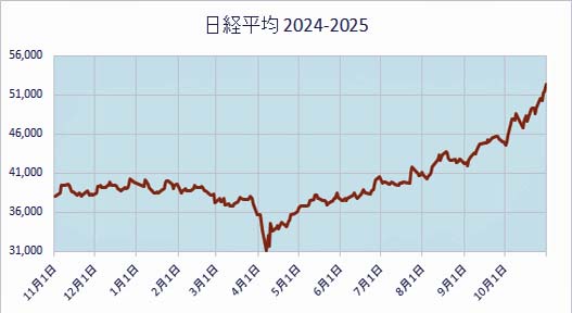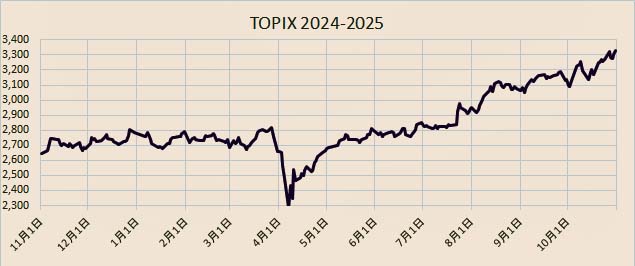 | 2025年10月の東京株式市場は、TOPIX、日経平均共に先月に続いて年初来高値を更新した。 「山高ければ谷深し」の格言が聞こえてくる。 このような状況において、MMZは「様子見」指示を出しました。 |